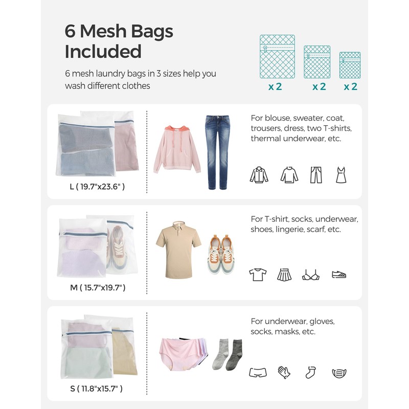 - [6 Mesh Laundry Bags Provided] This hamper comes with 6 laundry bags to help you protect your underwear, socks, or other delicates when you wash them in the washing machine