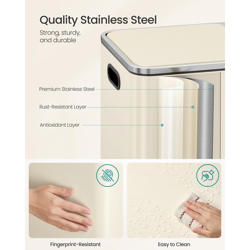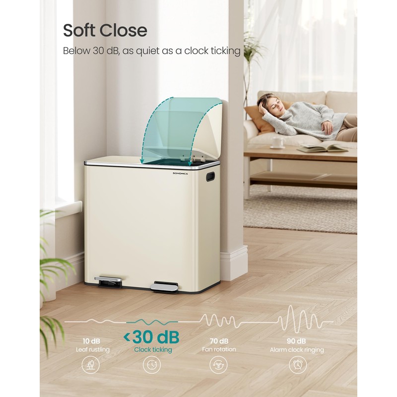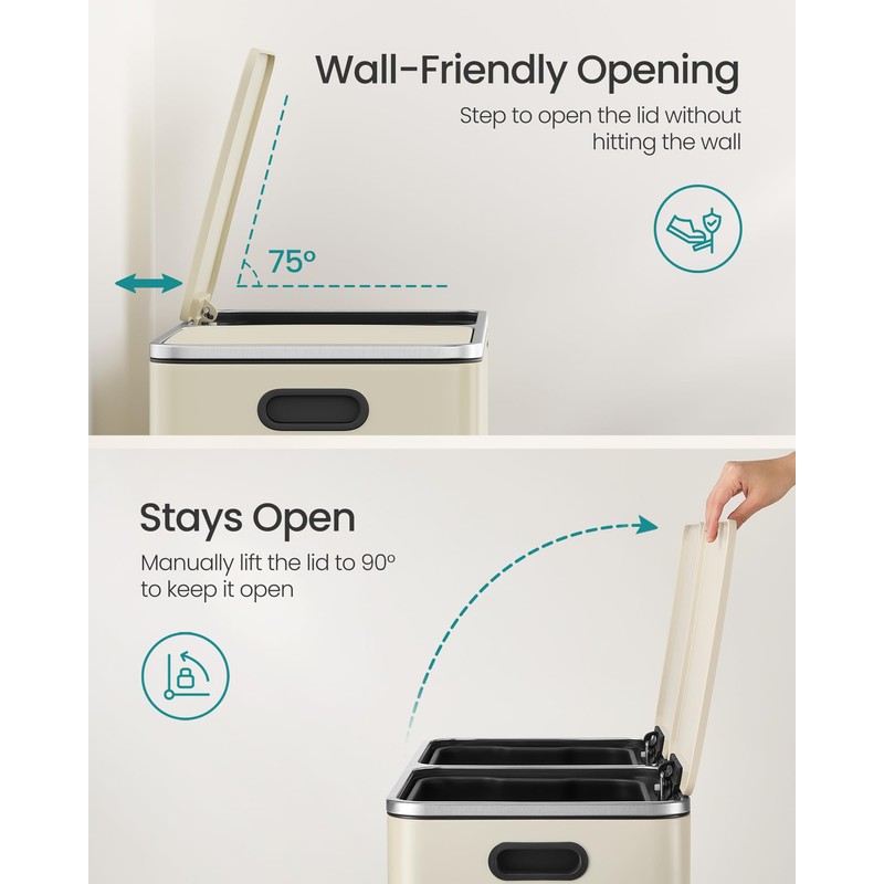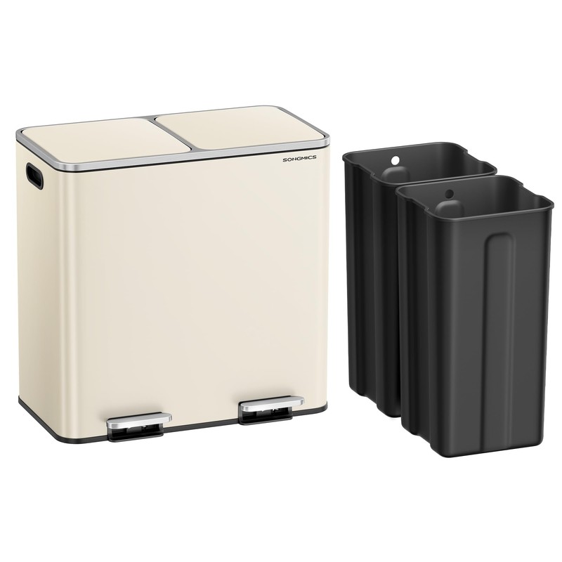 SONGMICS Trash Can, 2 x 10.6 Gallon (2 x 40 L) Garbage Can for Kitchen, with 15 Trash Bags, 2 Compartments, Plastic Inner Buckets and Hinged Lids, Airtight, Almond Color ULTB730A01V1