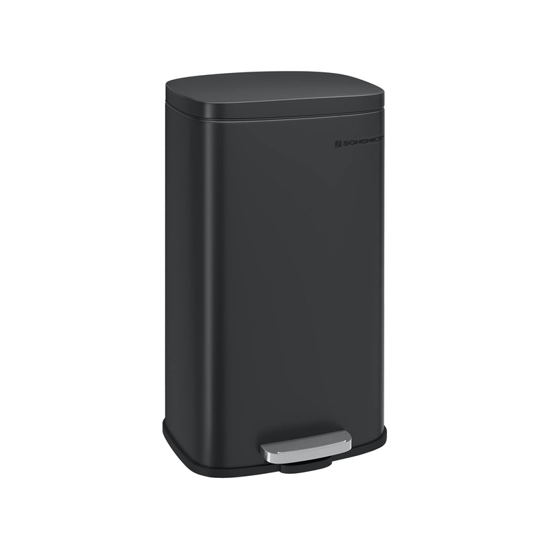 SONGMICS Trash Can with Lid, 8 Gallon Garbage Can, Stainless Steel Small Waste Bin with Step Pedal and Inner Bucket, Soft Close, Kitchen, Black ULTB102B01