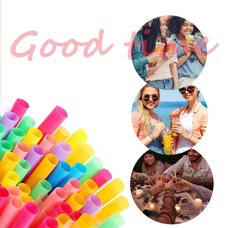 SONGNASS 100 Pcs Individually Wrapped Straws Jumbo Smoothie Straws Boba Straws,Disposable Wide-mouthed Large(0.43" Wide X 9.05" Long) (Multicolor), SONGNASS-100