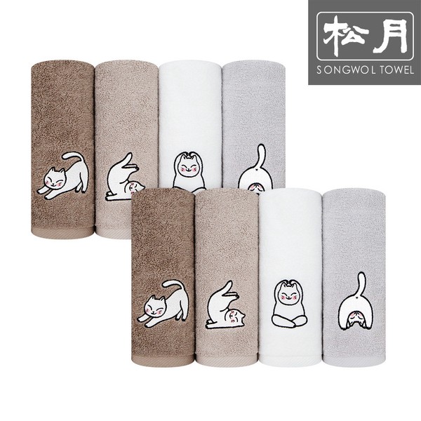 Songwol Towel Songwol Yoga Cat Face Towels 8 sheets, dark brown / 송월타올 송월 요가고양이 세면타월 8장, 진갈색