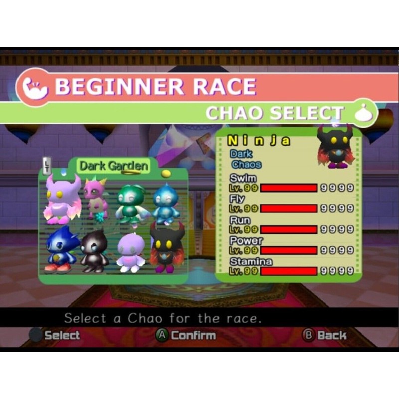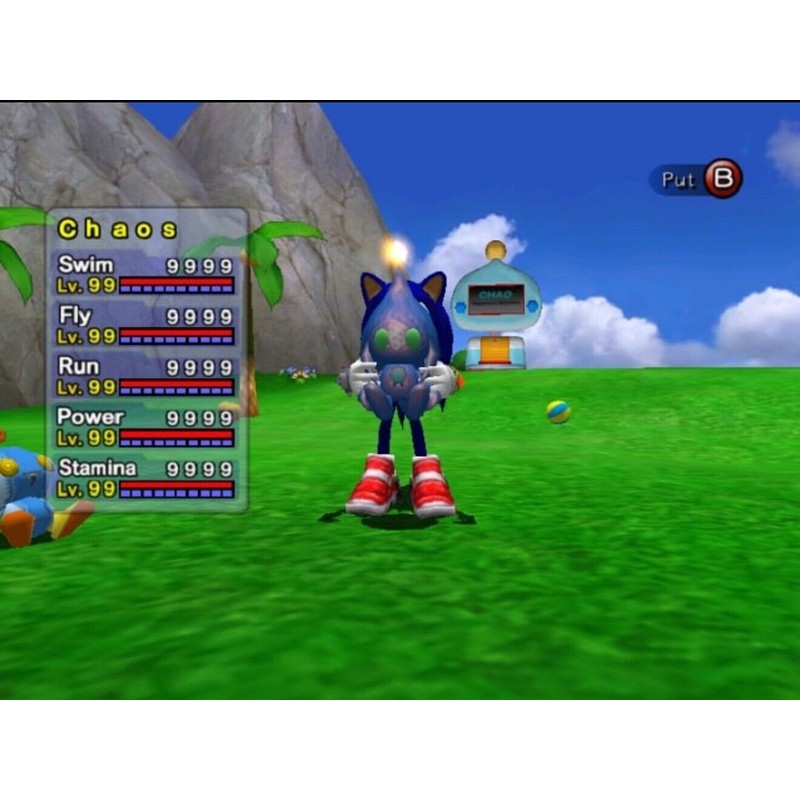 This is the Ultimate save for your Sonic Adventure 2 Battle game! This save file comes with the main Sonic Adventure 2 Battle game COMPLETED with all A rank and 180 Emblems. Also included is the ultimate Chao Garden! With amazing & rare Chaos, including a Tails, Amy, & Knuckles exclusive chaos! All Chaos will be maxed out in rank, you will also have 99999 Rings in the store to buy more items. Please see pictures for more details.