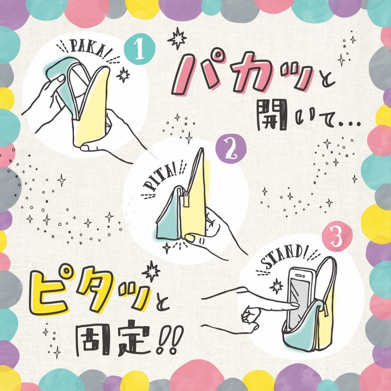 • Convenient standing pouch for smartphone or mirror