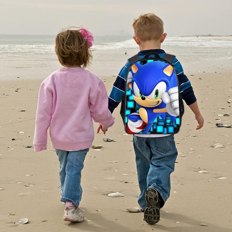 Soniic Children's Backpack, Hedgehog School Bag Kids Toddler Preschool Travel Backpack 3D School Backpack for Kids Printed Rucksacks Travel Luggage Backpack Bookbag for Girls Boys (44*28*13cm)
