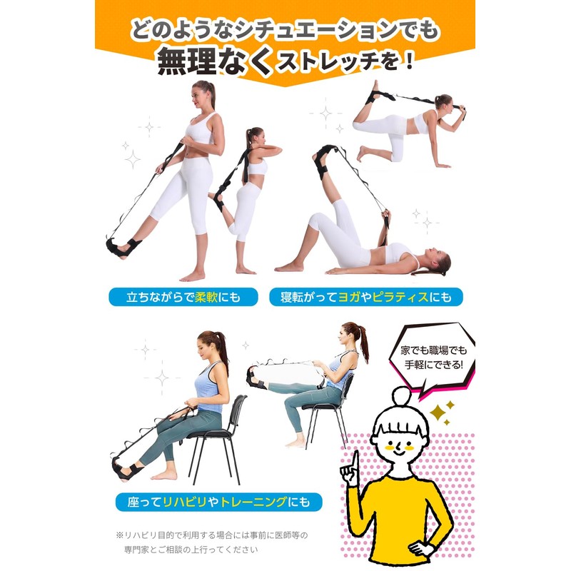 - 【日本語での充実サポートと保証】 ✅お客様からのお声を踏まえて、海外ブランドにはない、紙での取扱説明書はもちろん、動画でのストレッチガイド情報付き。ストレッチやリハビリの習慣化を目指して、ご自身に合った使い方探しをサポートします。また、商品保証も通常の30日を倍にした60日間の保証が付いています。万が一、商品に不具合があった場合もメール、LINEなどを通して日本人スタッフが丁寧に対応いたしますのでご安心ください。 ■商品展開サイズ;138 x 14 x 2.5 cm