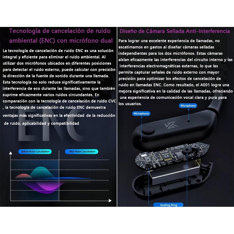 Sonivilloso KZ AE01 Bluetooth 5.4 Module Upgrade EarHook para Auriculares 2 Pines, micrófonos duales ENC Reducción de Ruido Adaptador de Auriculares inalámbricos