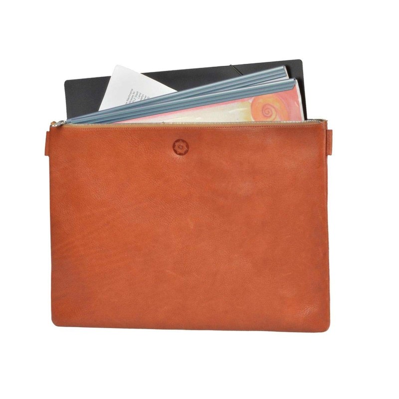 Sonnenleder Document Folder Large Bank Bag A4 Leather with Zip Leather Folder Natural Brown
