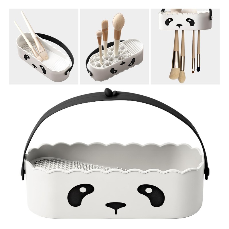Sonnorel Silicone Makeup Brush Cleaner Tool with Drying Holder Pad, Makeup Sponge Brushes Organizer Cleaning Storage Box (Panda/White)