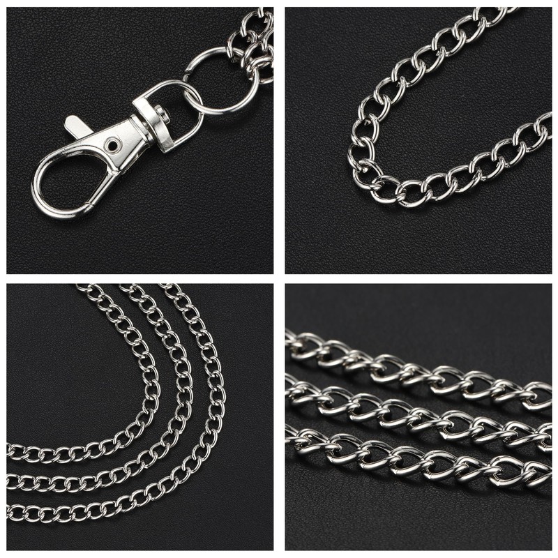 - Grommets Studded Belt With Detachable Chain: The double studded holes make it easy to wear convenient and more flexible adjustment.Detachable chain can be trousers chain, pants chain,wallet chain,pocket chain,hip hop punk jeans chain,key chain.This leather belt will go well with any outfit, so the black belt is a great accessory for both men and women