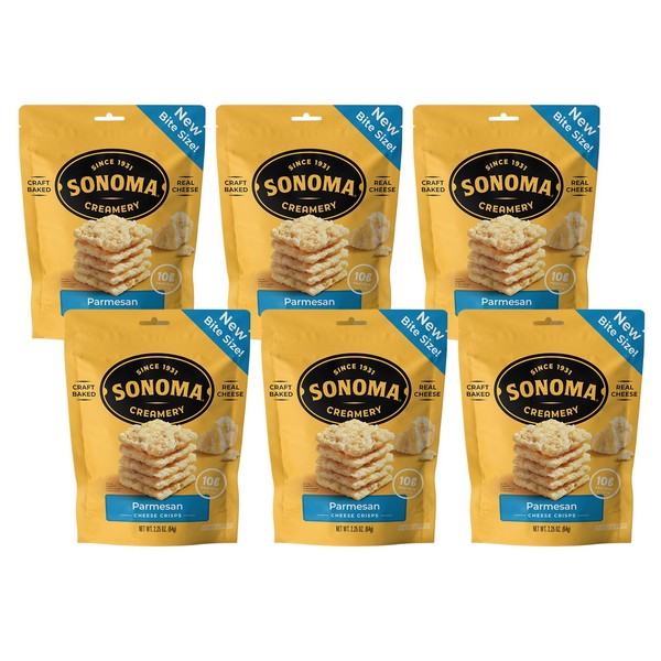 Sonoma Creamery - Cheese Crisps, Parmesan| Savory Snack | High Protein | Low Carb | Gluten Free | Keto- Friendly, 2.25 Ounce (Pack of 6)