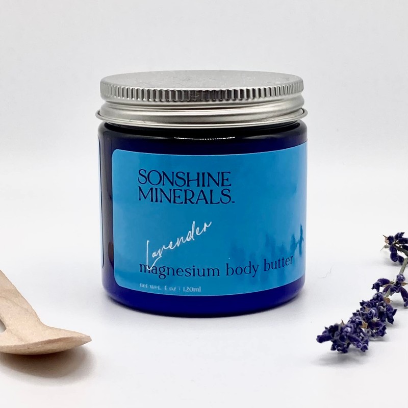 Sonshine Minerals Restless Legs Calming Cream - Lavender Magnesium Butter - All Natural With Shea and Mango Butters, USA Made