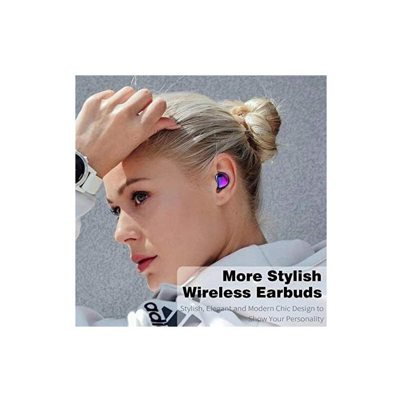 - 【More Stylish Wireless Earbuds】 Wireless Earbuds are not only for Listening to Music, and also could be Fashion Lifestyle. Inspired by Aurora color, we use customized non-conductive vacuum plating technology to make the surface of earbuds to be shiny and dreamy. It also sweat-proof, splash-proof and rainproof so you can use with various scenes Collocation.