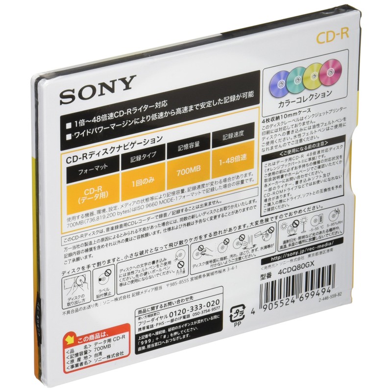 Sony Data CD-R 1 – 48 X Speed 10 mm Case For 4 Piece 4cdq80gx