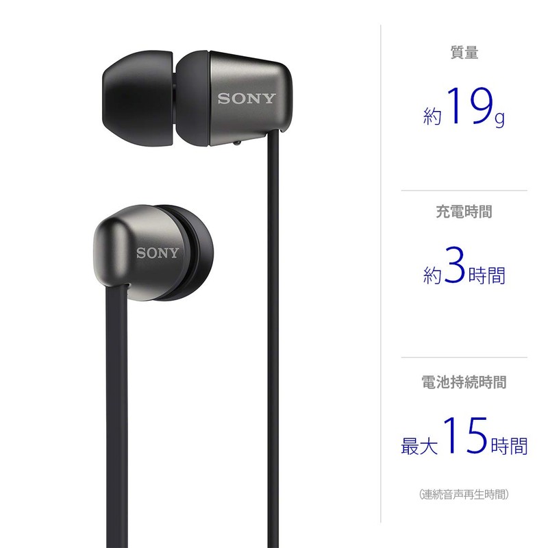 Sony WI-C310 Wireless Earphones, Bluetooth Compatible, Up to 15 Hours of Continuous Playback, Microphone Included, Flat Cable, 2019 Model, Black WI-C310 BC