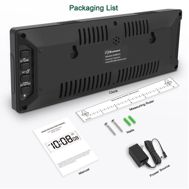 - Led screen with large digits display - Soobest digital wall clock has a 11.5 inches large led screen display with 3 inches eye-catching number display, there is no doubt that you can see it from any angle or at any indoor-distance, and the digit size is also big enough to recognize. Besides, you could check date & year on the screen, no worries about missing important appointment.
