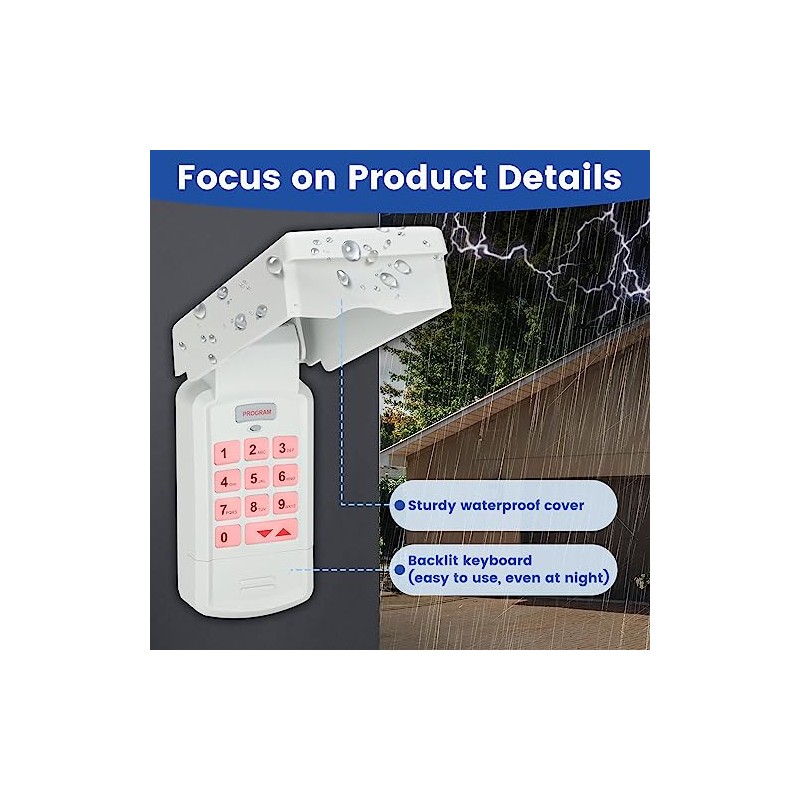 • Upgraded Design: Garage door wireless keypad design makes installation simple, avoiding the trouble of drilling and wiring in the wall. Clamshell design and waterproof and corrosion resistant material for long service life. Backlit numbers are easy to read even in the dark. And you can easily open and close your garage door without using a remote control, helping you solve the problem of forgetting your remote control.