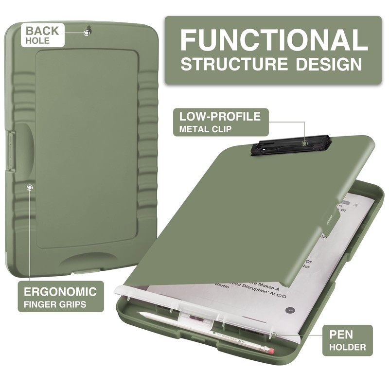 - High Capacity: Equipped with both a paper storage component that holds twice as much paper as other clipboards and a built-in pencil case. The high-capacity medical clipboard can securely hold up more than 200 letter-sized documents and legal pads, and up to 6 pencils.