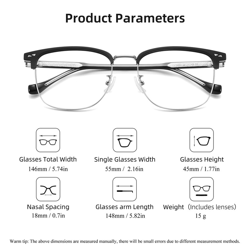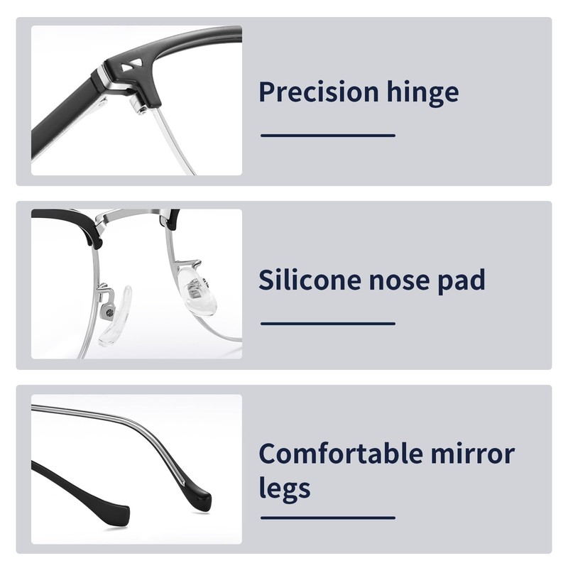 - STYLISH DESIGN: The classic half-frame design is suitable for all face shapes, double reinforced hinges effectively improve the durability of the product, soft nose rest is comfortable to wear, skin-friendly temples are non-slip, lightweight and not easy to fall off.
