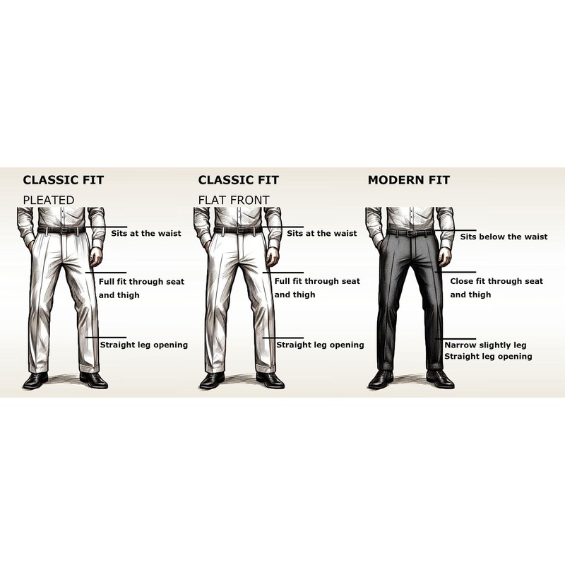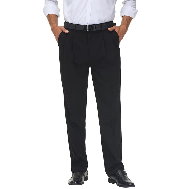 - Comfort - Mens pleated dress pants have a slight stretch waist, Classic fit is relaxed through the hip, thigh, and straight leg