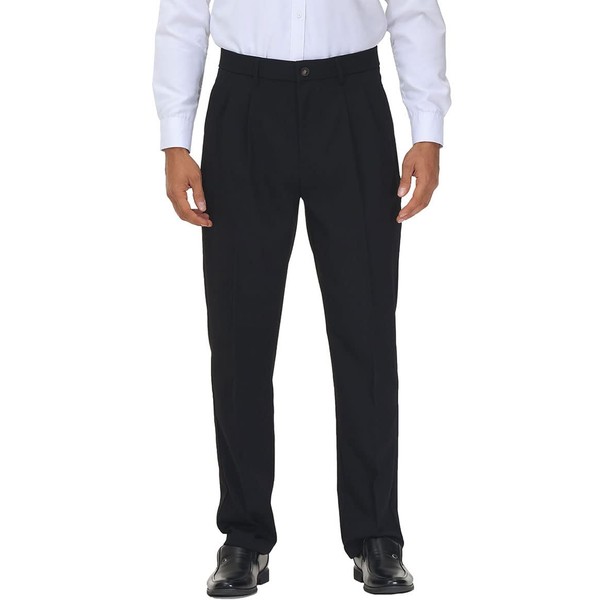 Soojun Men's Flex Pleated Front Classic Fit Dress Pants, Black, 34W x 32L