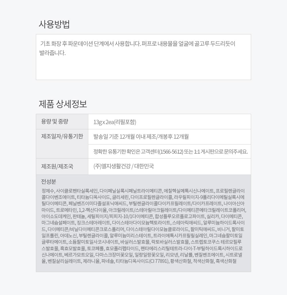| How to Use | Apply evenly on the face after basic skincare using a puff. |
