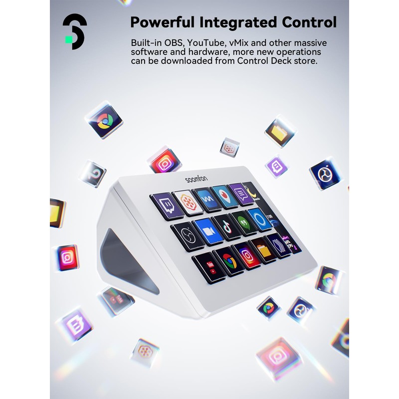 SOOMFON Stream Control Deck with 15 Macro Customizable LCD Buttons to Activate Actions in OBS, Twitch, YouTube, for Live-Streaming, Photo and Video Editing
