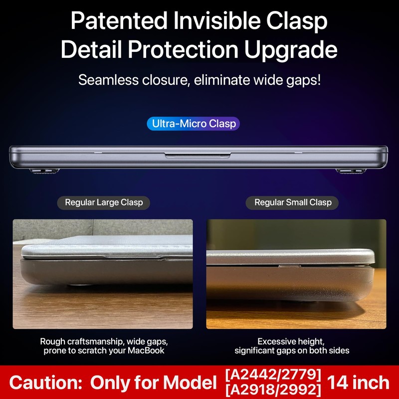 - 🚨【Attention: Check Your Model】ONLY compatible with MacBook Pro 14 inch 2023-2021 Release with new M3 M2 M1 Pro / Max Chip (Models: A2992 / A2918 / A2779 / A2442). Not fit other models. Pls verify Model No.【Axxx】on the underside of MacBook before buying.