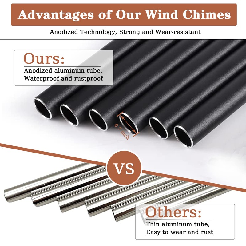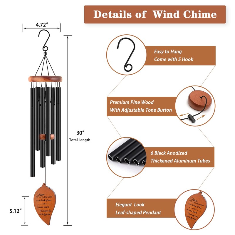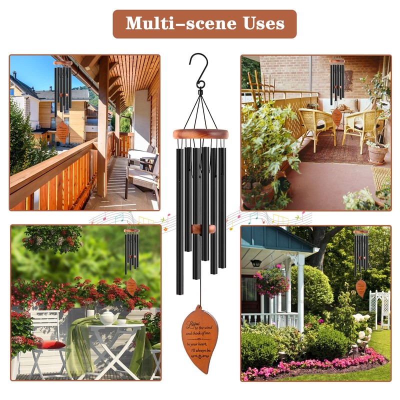 - Better Alternative than Flowers: Flowers will fade, but the memorial gift can last a long time. Compared to others' inferior wood planks, our memorial wind chime is made of high-quality pine wood which is sustainable and recyclable. The 6 black thickened aluminum tubes are made of anodized technology to make them lasting, waterproof, wear-resistant, and can withstand all kinds of bad weather.