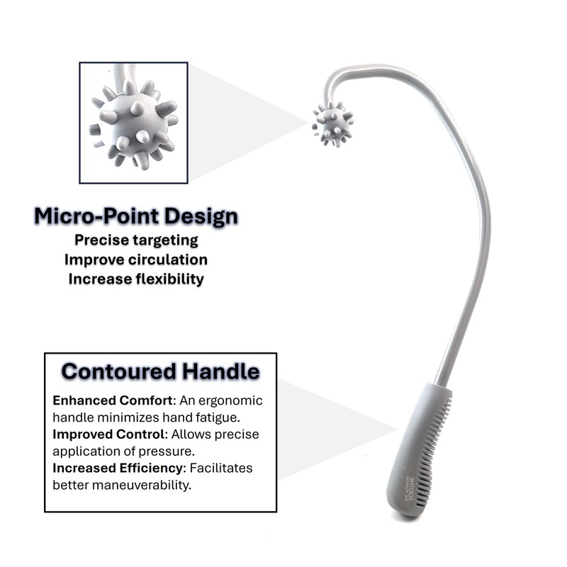 - Health Benefits: Stress and Pain Relief - Regular use of the Soothe by Apana Back Massager can help reduce chronic back pain, soothe muscle aches, and alleviate stress. Improved Circulation: The stimulation from the micro point massage ball helps enhance blood flow, which aids in the healing of muscles and provides a general sense of well-being. Increased Flexibility: By loosening up tight muscles, you can enjoy an increased range of motion and flexibility, which is especially beneficial for athletes or those with physically demanding lifestyles.
