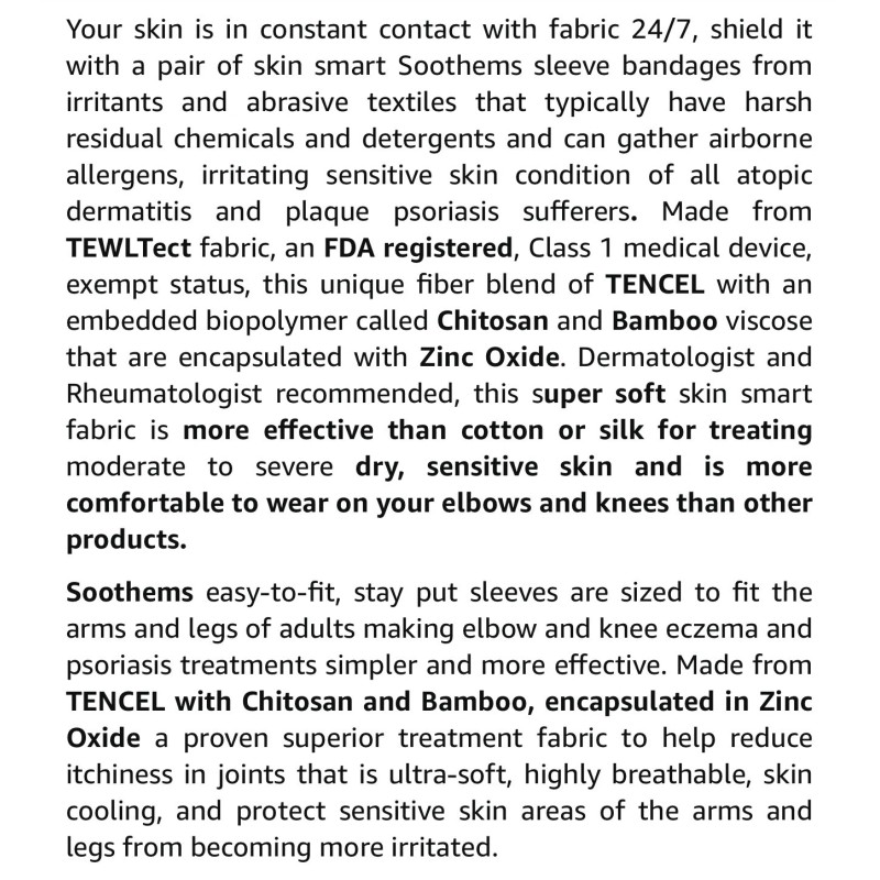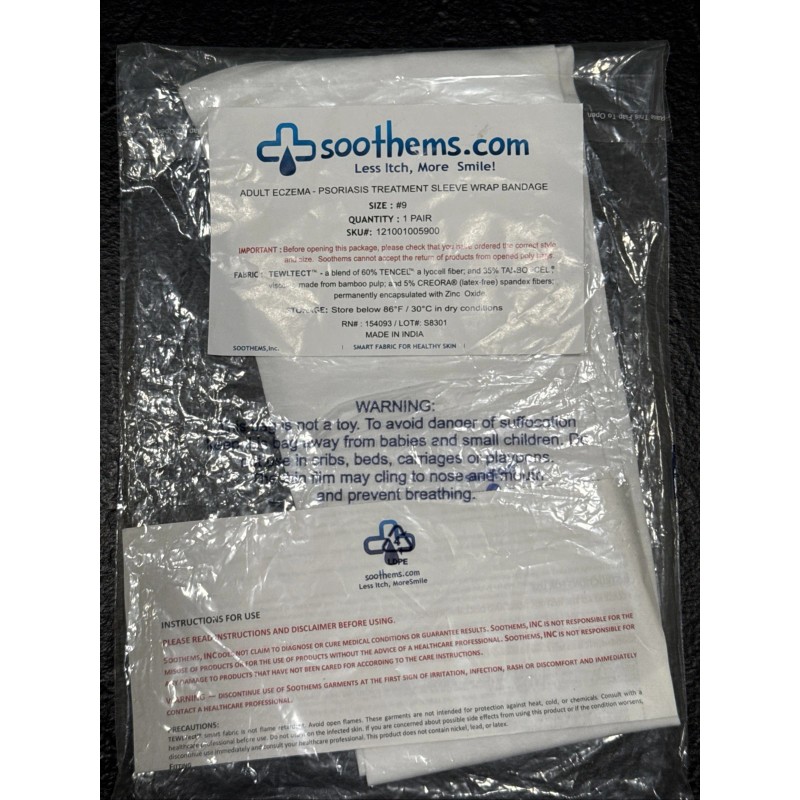 Soothems Eczema Psoriasis Itch Relief Arm & Leg Sleeve White Wrap Bandage Size 9