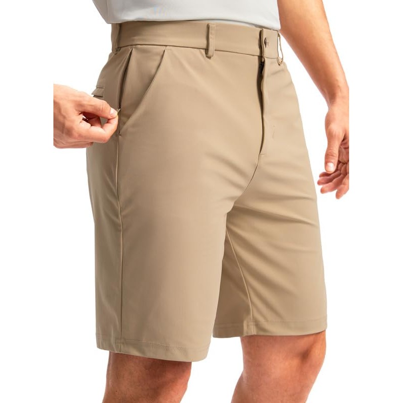 Soothfeel Men's Golf Shorts with 5 Pockets Stretch Lightweight Quick Dry 9 Inch Flat Front Casual Work Dress Shorts for Men (Light Khaki, 32 Size)