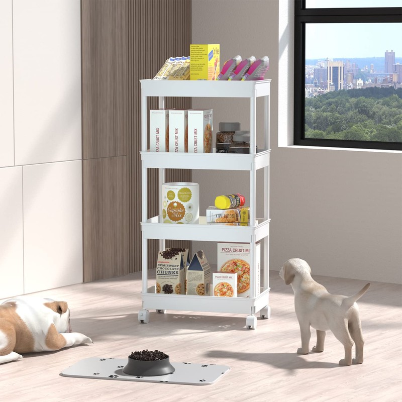 - Flexible 4 Tier Wide Storage Cart:The rolling cart with wheels(360°rotating ) The storage cart can be moved to any corner of the house to store items,can be used in tight spaces in your home for storage.