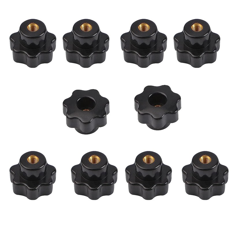 Sopepoyie M8 Star Through Hole Knob Female Thread Nut Clamping Knob Grip Assortment Kit, 10pcs, M8X31, Black Plastic, Star Knob