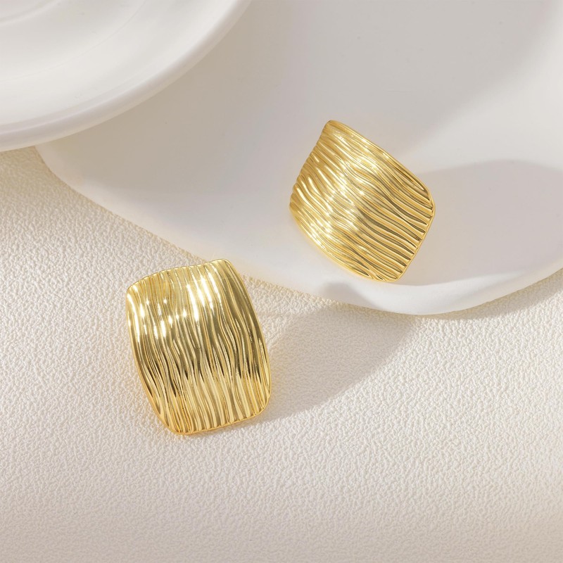 Sophalla de la Moda 18K Gold-Plated, Wood Grain Texture, Hypoallergenic, Nickel Free, Rectangular Glamwood Stud Earrings for Women with Luxe Red Box