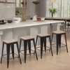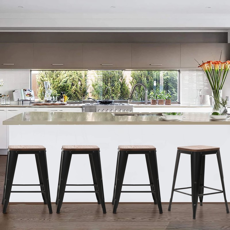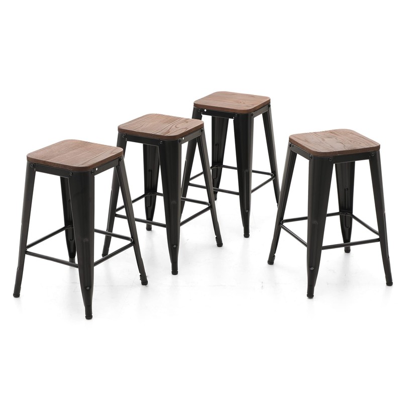 Sophia & William 24" Metal Bar Stools Set of 4 Counter Height Backless Stools with Wooden Seat,Indoor/Outdoor Barstools,Matte Black