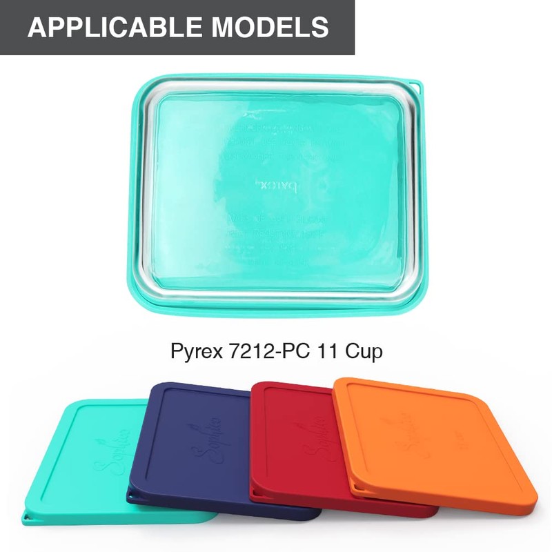 Sophico 11 Cup Rectangle Silicone Storage Cover Lids Replacement for Pyrex 7212-PC Glass Bowls, Container not Included (MIX)
