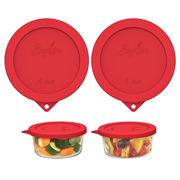Sophico 4 Cup Round Silicone Storage Cover Lids Replacement for Anchor Hocking and Pyrex 7201-PC Glass Bowls (Container not Included) (Red-2 Pack)