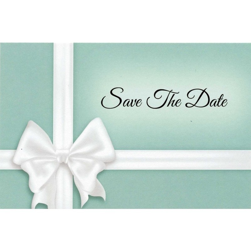 - These elegant Something Blue Save The Date Postcards are perfect for letting your friends and family know the date of your upcoming wedding! The front of this save the date postcard features a beautiful aqua blue color theme with white bow. On the back of the postcard are fill-in-the-blank lines for: Save the date of, For, At, and the recipient's mailing address. Use a postcard stamp to mail these postcards. Made out of 14 pt. Premium Uncoated Cover stock. 6 x 4in.