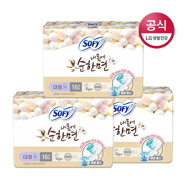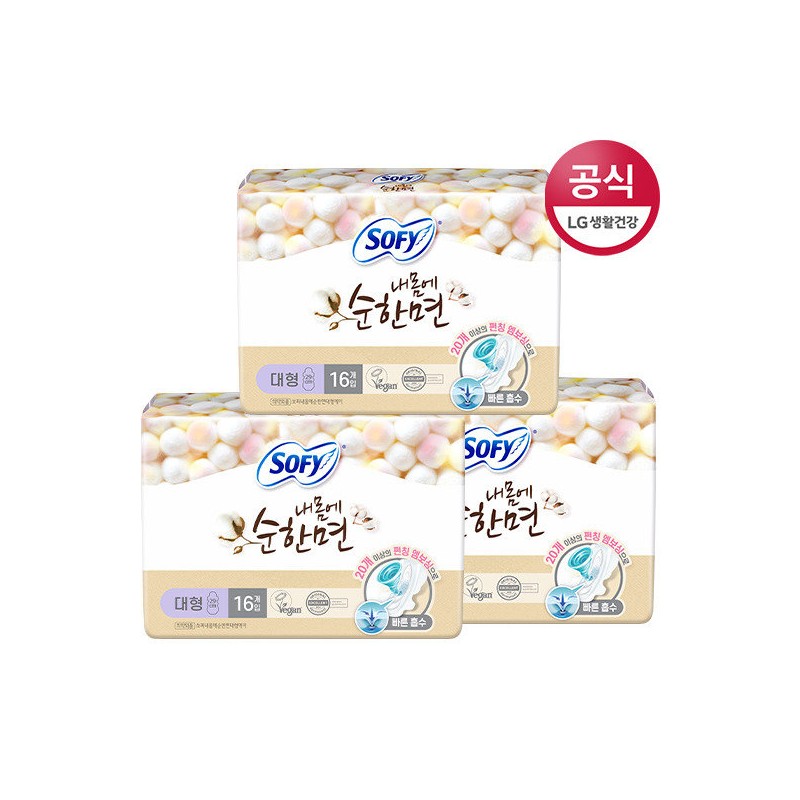 Sophie [Sophy] Gentle cotton sanitary pad for my body, large size 16Px3 pack / 쏘피 [쏘피] 내몸에 순한면 생리대 대형 16Px3팩