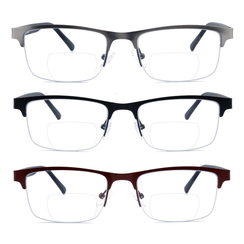 - Stylish half-rim design: Bifocal reading glasses men, classic semi rimless design, rectangular lenses, which make you stand out from the crowd; It's the best present for fathers, friends, elders, and yourself