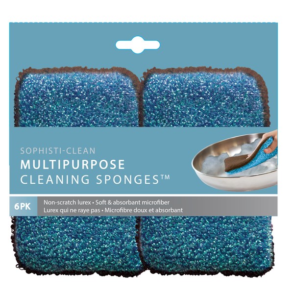 Sophisti-clean Multipurpose Cleaning Sponges, Dual-Sided Sponges, Pack of 6