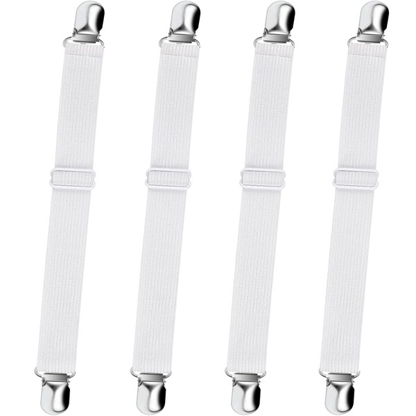Bed Sheet Straps, Sopito Adjustable Elastic Fitted Sheet Corner Holders Straps to Stay in Place, Non-Slip Fasteners Clips Compatible for Crib to King Size Bed, White 4Pcs