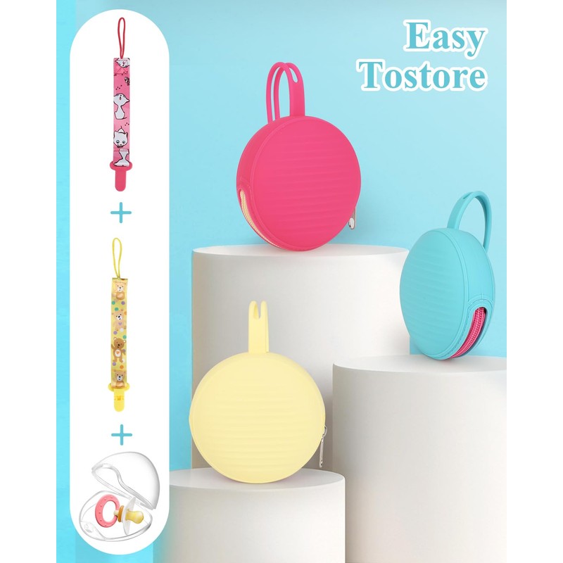 - PRACTICAL SET: The Silicone Pacifier Holder Case can store baby's essentials in different scenarios, the pacifier case can keep the pacifier clean at all times, and the pacifier clip prevents the pacifier from falling on the floor, making it a practical must-have set for moms.