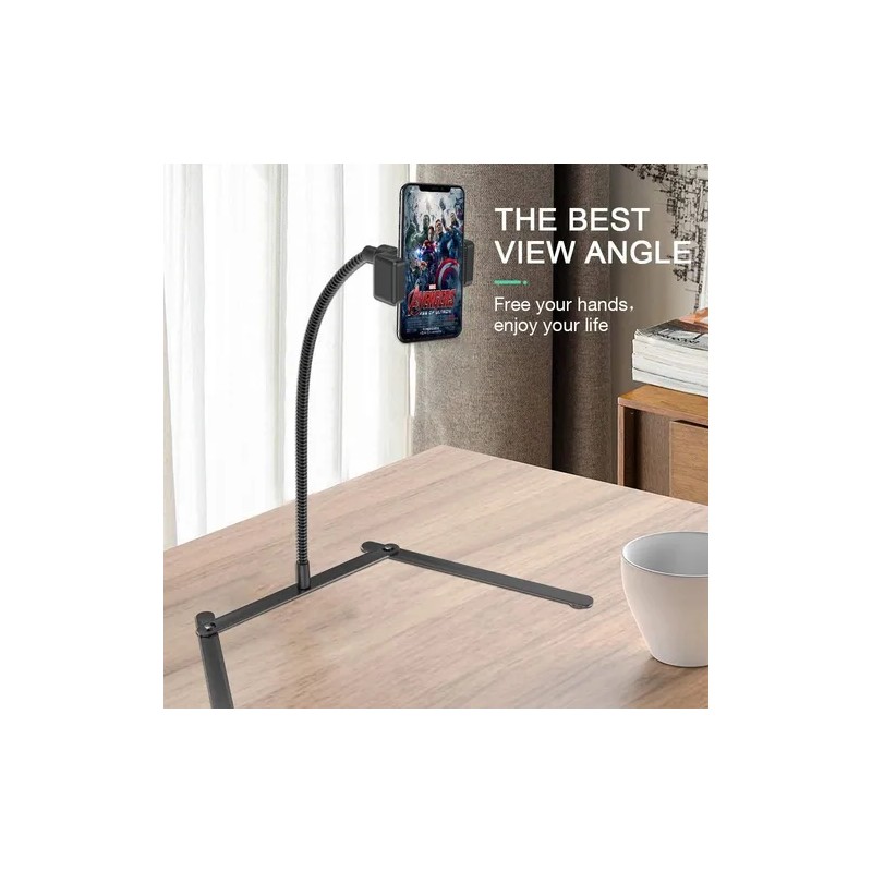 4.Ángulo flexible y ajustable en altura: la altura se puede ajustar libremente. Con este soporte, no necesita sostener su celular por mucho tiempo. Se puede utilizar para grabar conferencias en línea, grastronomía, retransmiciones y disparo, etc.