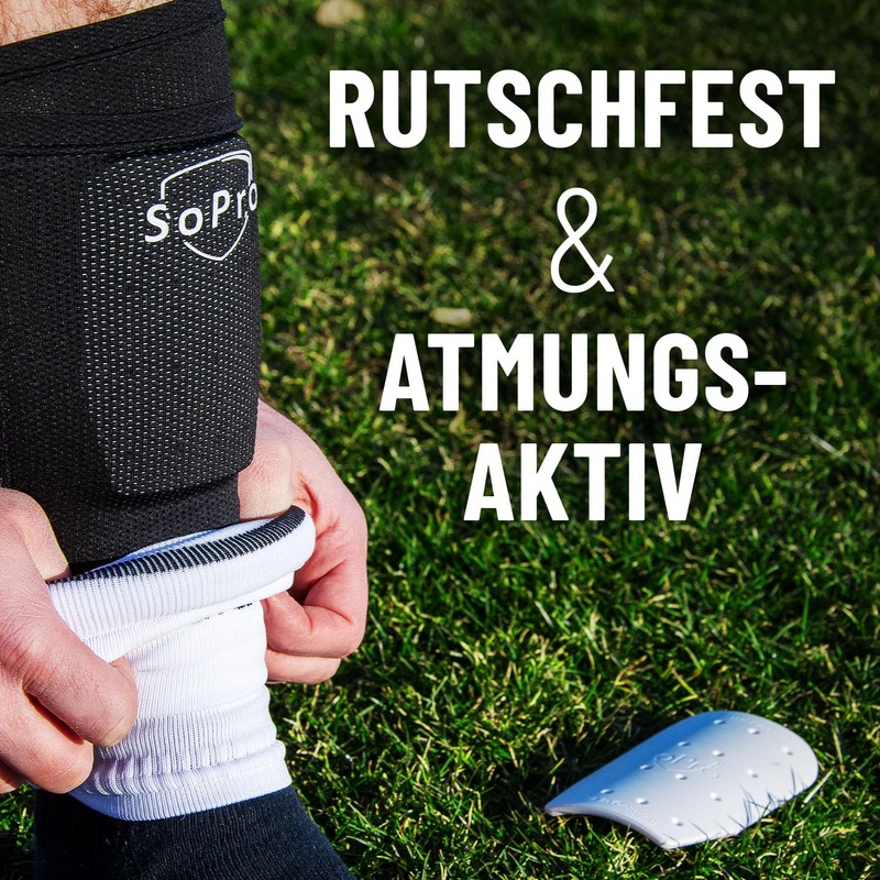 - Optimal fit for children, adults, women and men – the SoPro shin guard socks adapt perfectly to any shin
