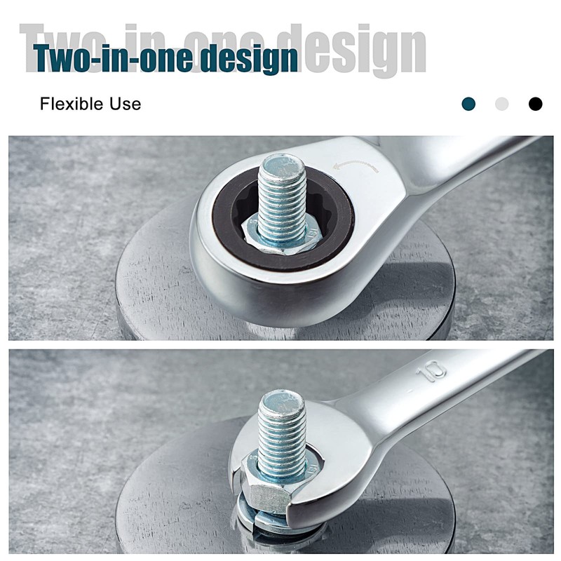 - The ratchet end uses a 12-point design and 72 teeth, making it easy to grasp clumsy fasteners. You only need to rotate the wrench 5 degrees to reach the next click, which makes it faster and easier installation and removal of fasteners.