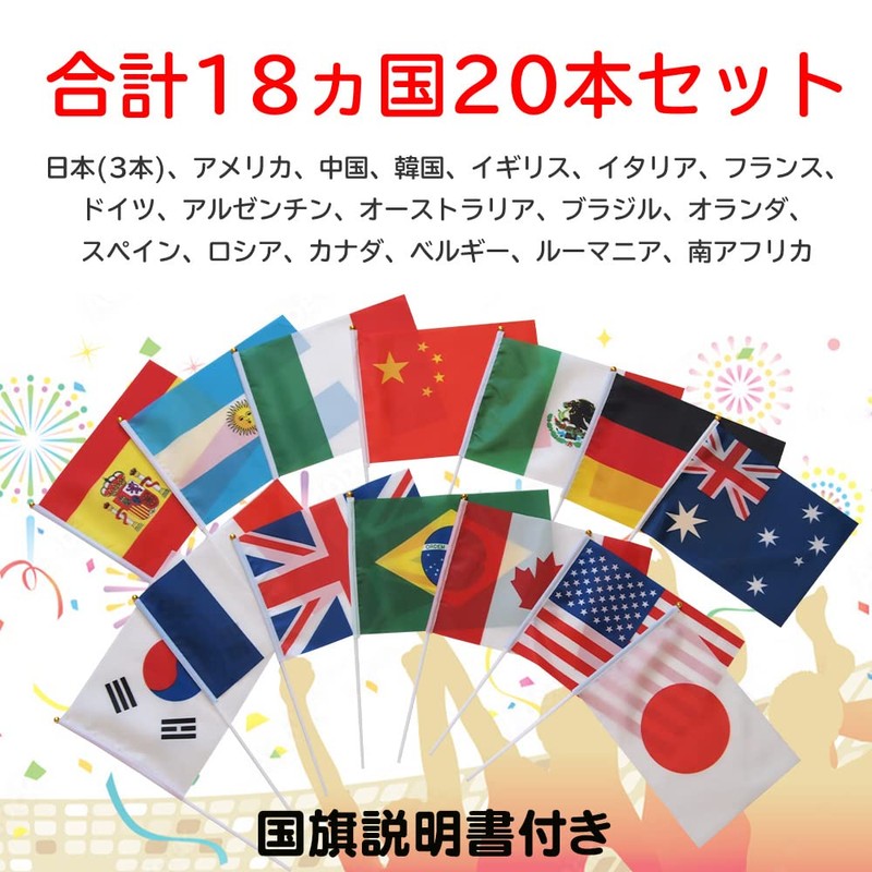 - 【Flag Set Details】Japan x 3 pcs, US, UK, Italy, France, Germany, China, Korea, Argentina, Australia, Canada, Brazil, New Zealand, Holland, Spain, Belgium, Mexico, South Africa. Includes flag instructions