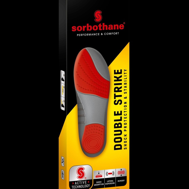 SORBOTHANE Double Strike Insoles for Men and Women Antibacterial Shock Absorption & Heel Support Insoles, Size 5-6.5 UK, 38-40 EU, Yellow