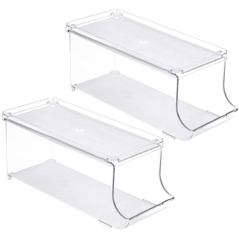 From beverages to canned goods, the Sorbus Can Organizer Bins are the perfect solution for corralling cans! This set of two holds up to 20 cans total with a removable lid for protection or extra storage. Use in the refrigerator, freezer, or pantry to keep your kitchen organized with a clear view. When you’re ready to replenish, simply restock the cans for grab n’ go access or stack additional bins on top to maximize space. Now there’s no more searching for your favorite can of pop! Most of all, enjoy your neatly organized can collection.