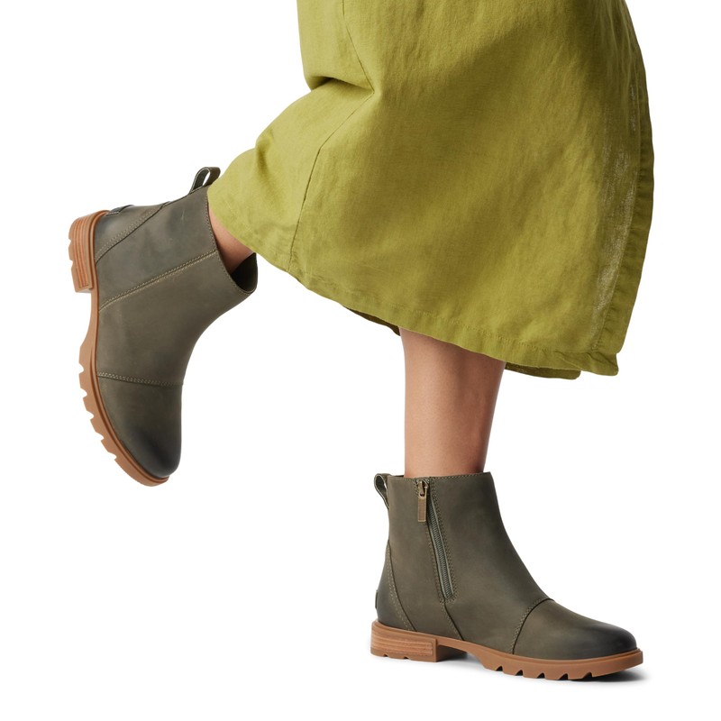 SOREL Women's Emelie lll Zip Waterproof Boot - Stone Green, Gum 2 - 10